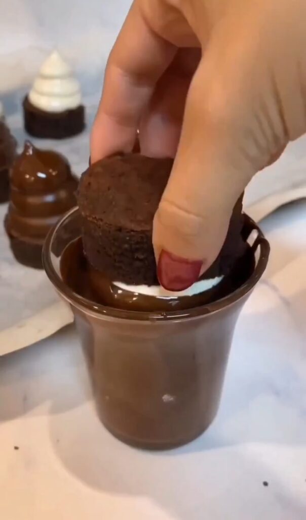 Ispeci brownie u manjim kalupima ili tepsiji pa isijeci na male komade. Ostavi da se ohladi. (Na toplu podlogu pjena se počne topiti, pa je važno da je hladna.)