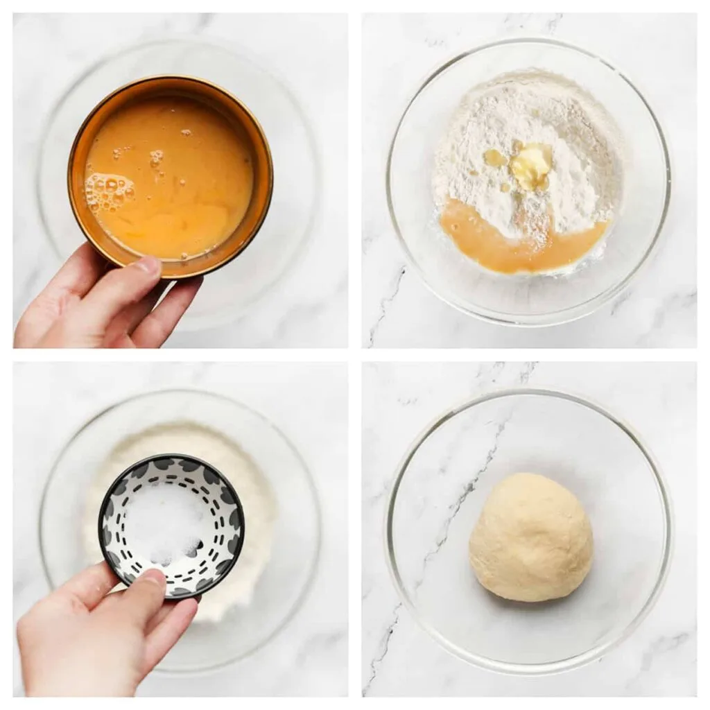 Dodajte jaje i umutite ga. Zatim dodajte brašno, maslac i sol. Mijesite 12 do 15 minuta dok ne postane glatko.