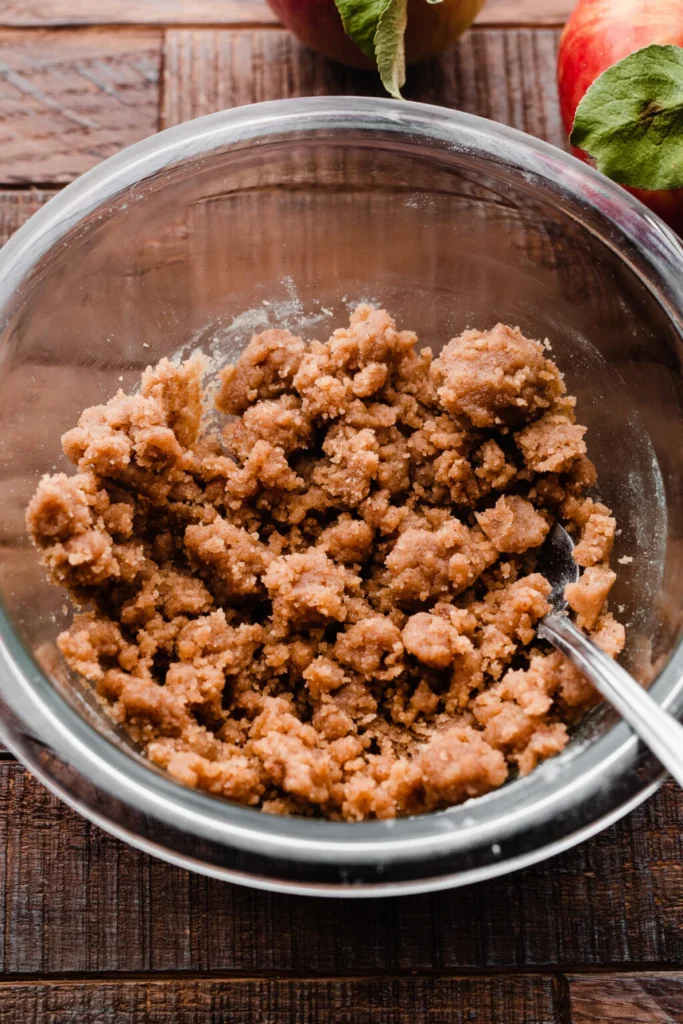 Otopite maslac u malo zdjeli. Dodati preostale sastojke. Trebali bi dobiti mrvičastu smjesu. Izmrvite smjesu na male komade u plehu a zatim je pecite 10 do 12 minuta u rerni na 175 stepeni dok ne porumeni. Izvadite je i ostavite sa strane.