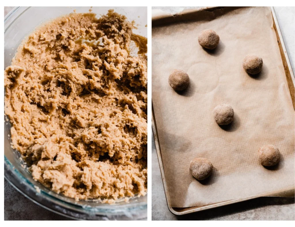 Rernu zagrijati na 190 stepeni. Tepsiju obložiti papirom za pečenje. U posudu pomiješati začine za premazivanje i šećer. Tijesto uvaljati u smjesu šećera i cimeta. Pecite 10 do 12 minuta. Rubovi kolačića trebali bi se osjećati čvrsto kada se kucnu vrhom prsta, dok sredina će biti malo napuhana i kao nedovoljno pečena. Ostavite ih na plehu 30 do 60 sekundi da odstoje a zatim napravite udubljenje u sredini kolačića kašikom i ostaviti ih da se skroz ohlade.