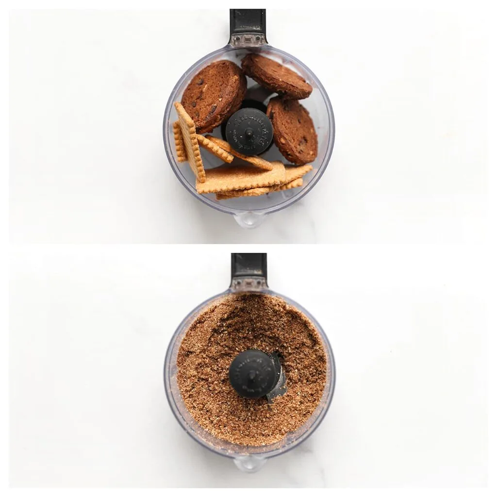 Samelji oba keksa (čajne i s komadićima čokolade) u sitne mrvice.